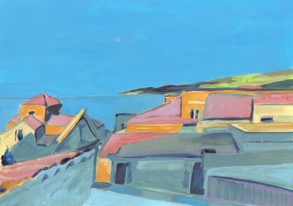 January in Tropea (Gennaio a Tropea). January 12, 2022. Rooftops. Gouache and ink pen.